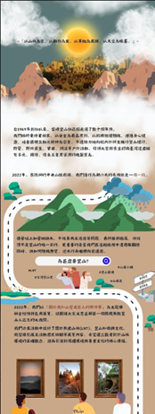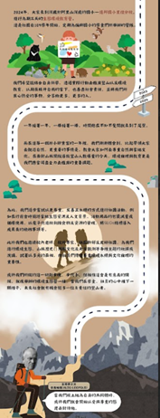 內容包含「雲峰山社簡介」「登山簡史」「無痕山林LNT」「攀岩攀去哪」「高山小精靈」「山人們的私房料理」「登山道具」……等,以精美海報展示架搭配解說員深入簡出的講解,讓大家都能在五分鐘內了解登山時所必需的基礎知識與文化素養,並達成快樂上山、平安下山的理想願景,請參閱附件四