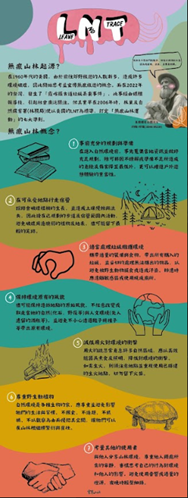 森林暨自然資源學系 | 培養在地文化關懷與全球意識 | 在這次的活動中,其中一項宗旨即為「以自然生態保育與環境保護為基礎,教育無痕山林之觀念」,在活動中我們宣傳LNT的概念(生態保護)、登山歷史(文化意識的培養)與台灣山林的美景,希望藉此來喚醒觀者對環境、文化的關懷。 |