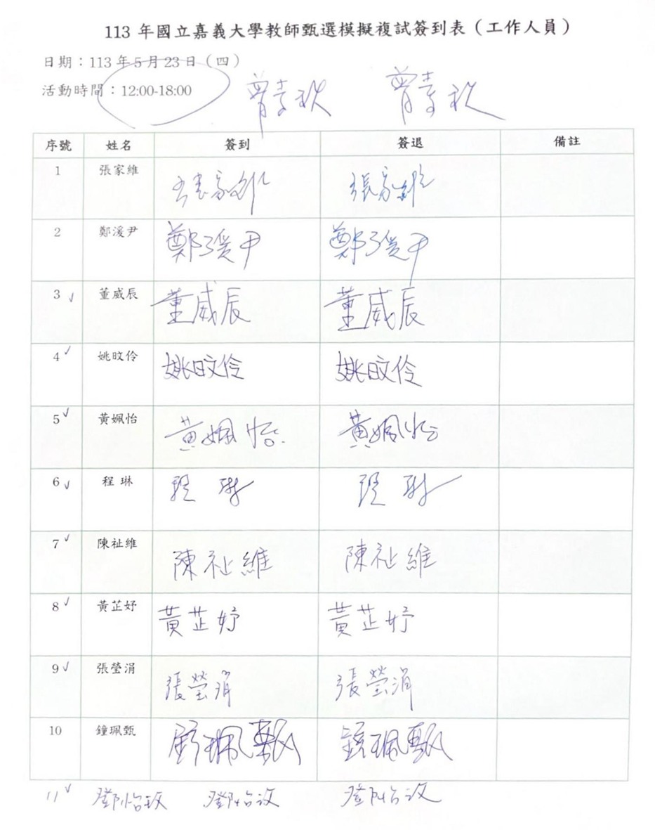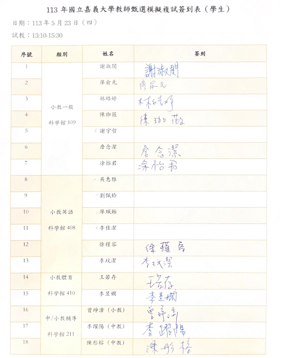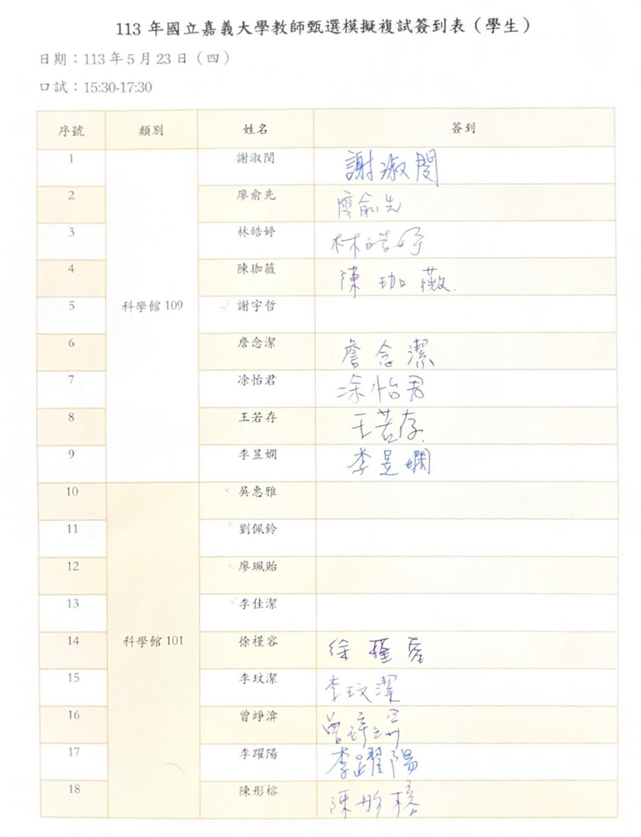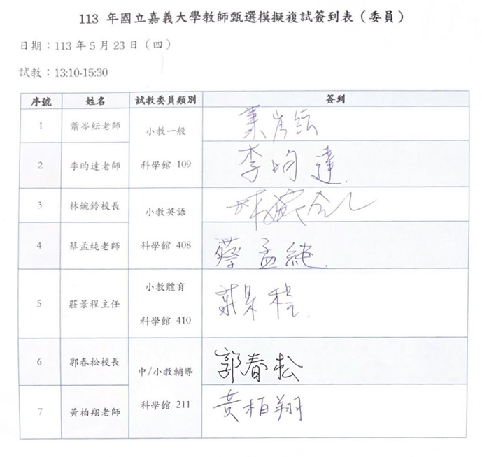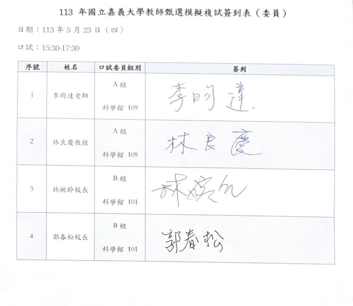 活動名稱 | 113年國立嘉義大學教師甄選模擬複試 | ||||||||||