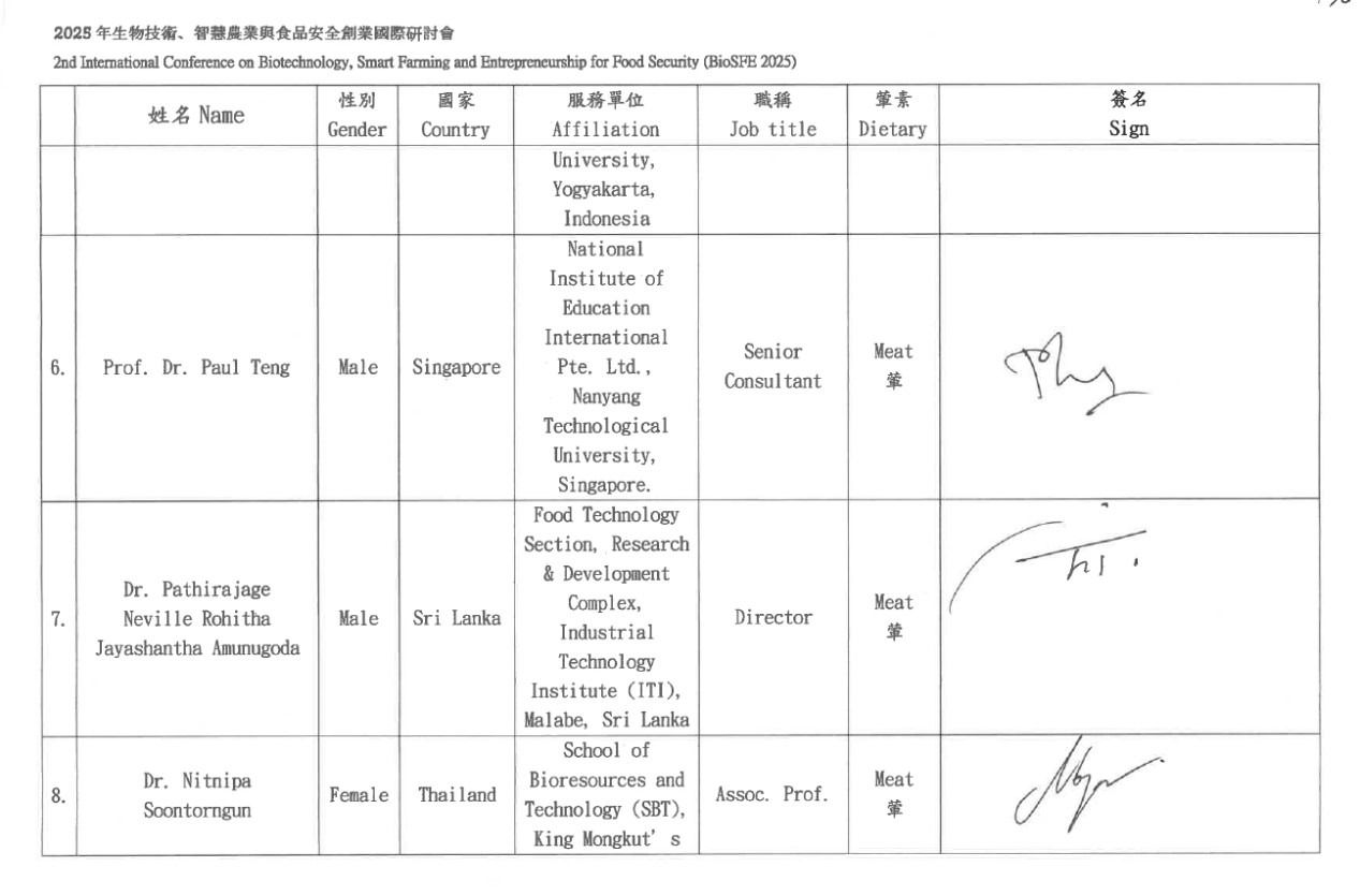 活動名稱 | 2025年生物技術、智慧農業與食品安全創業國際研討會 | ||||||||||||