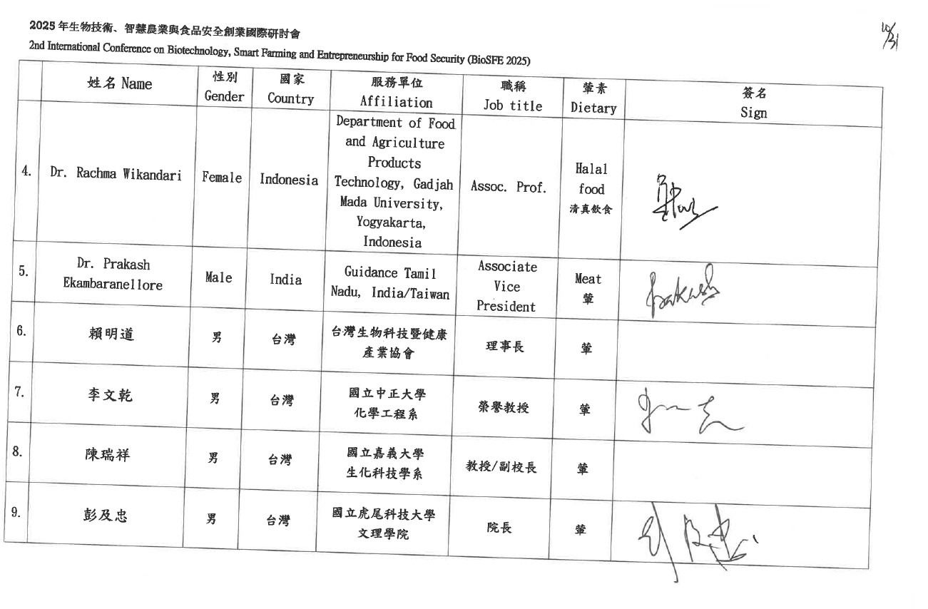 活動名稱 | 2025年生物技術、智慧農業與食品安全創業國際研討會 | ||||||||||||