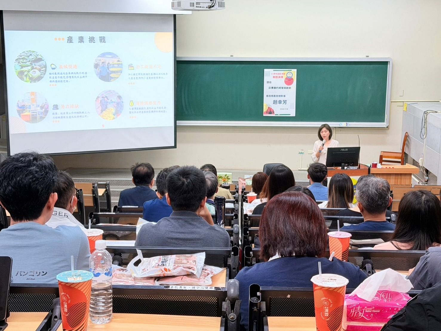 執行成果 | 請敘述活動具體成效(如:參與者的收穫、回饋、反應,或Q&A問答紀錄等) 由於嘉義縣番路鄉農會總幹事趙幸芳本身很健談,這次她以「農會的創新經營與創造就業」的題目為名前來嘉義大學管理學院碩士在職專班演講,分享她的三年多來經營嘉義縣番路鄉農會的經驗甘苦談,由於她的健談與幽默,全場笑聲不斷,學生們透過她的演講內容,可以知道基層農會經營的不易與艱辛。 | ||||||||||||