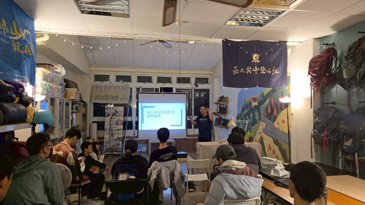 活動內容 | 演講內容為在高海拔環境下,若發生緊急症狀或受傷時的正確應對與處置方法。 內容涵蓋:高山症、創傷(如骨折、扭傷)及螫傷等狀況發生時的緊急處理方式,講師在簡報中明列出醫藥箱所需物品,並逐一講解運用在哪種情況及如何使用。 也因為講者的身分為消防員,更加著重在教導緊急情況下,應向哪個單位求救、求救時需說明的事項,以及在等待救援期間如何照顧傷患並定時紀錄其生命狀態;講者也有帶部分實體緊急醫療用品,與我們分享使用方式和注意事項,也叮嚀我們須在狀況發生時保持冷靜,緊急處理後等待救援。 | ||||||||||||