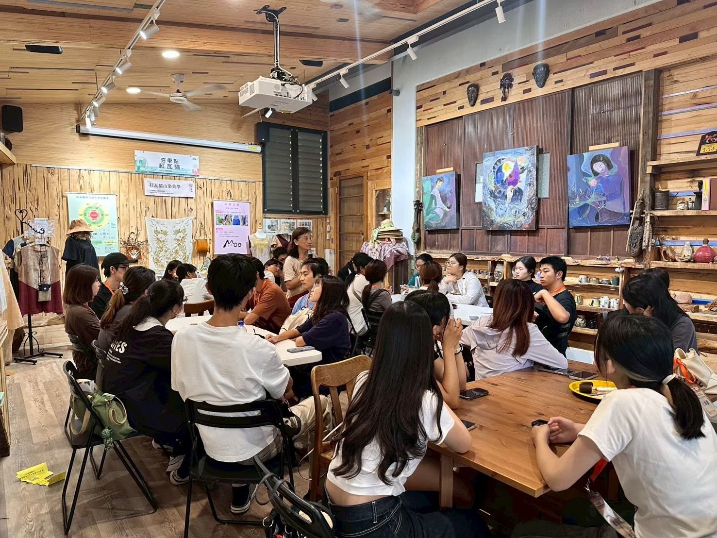 具體措施與 亮點成果 | 透過本次課程,讓學生認識到如何把「柿子」做成一條完整的地方產業鏈,從柿園到柿餅加工,再到農會展售中心,每一個環節都不只是農業生產,而是將日常食材變成具有文化底蘊的地方品牌。尤其是「柿漆」將農產的定位延伸成工藝材料,創造更高的附加價值。透過漆扇DIY體驗,讓學生親自參與農人與職人身分交疊下激發的創意,拉近產業與大眾的距離,教導其產業文化的多元性以及整合後如何形成完整、獨特的產業鏈。 在可敬高手可可農場,讓學生看到的不只是「巧克力怎麼做」,而是農場背後把「在地價值」做深、做長的態度。並不是單純種可可,而是把可可視為能代表地方的文化資源,從種植方式、加工流程到品嚐體驗,都在強調土地、氣候與人的連結。 以下學生心得節錄: 「我覺得可敬高手的價值體現在他們對地方農業的信念:台灣不一定要大量生產, 但可以透過小而精的模式,把在地食材做成有文化、有故事、有認同感的產品。 這比單純追求產量更能撐起一個產業,也讓人看見地方農業的另一種可能。」 帶領學生參觀紅瓦貓環教基地,最重要的目的是使其意識到:這不是在「做觀光」,而是在「做生活」。紅瓦貓不是靠華麗的硬體吸引人,而是用故事、記憶、手作和地方情感,把社區慢慢養起來。紅瓦貓厲害的地方,在於「社區營造」做得很接地氣,不是大規模開發,而是從居民的日常、舊房子的氛圍、在地材料(例如檳榔染布)這些小東西去累積社區的獨特性。這種從生活裡長出來的美學,比任何花大錢做的裝置都更有靈魂。紅瓦貓不只是復活空間,而是串聯人與人。透過手縫的小偶、染布、地方故事,他們讓參與者能真正「接觸到這片土地的人情味」。