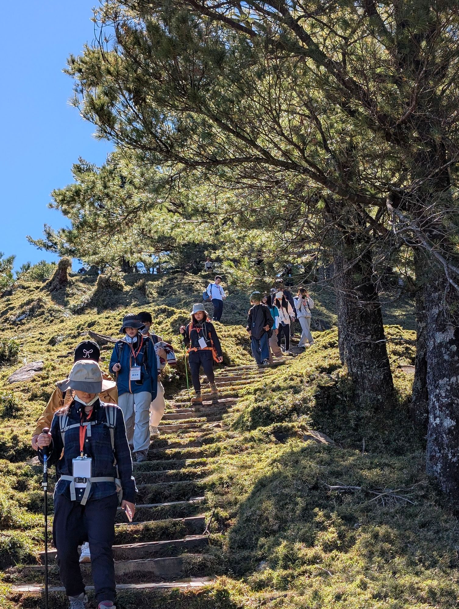 課程目標 及內容 | 本課程共分為兩天。第一天上午,修課學生於生資系館教室集合,由老師講解塔塔加的基本生態、高山症自我評估方式,以及公民科學軟體 iNaturalist 的使用方式,並協助學生建立個人帳號。 之後經三小時車程至山海圳最高點——上東埔停車場,亦為楠溪林道起點,老師帶領學生往玉山登山口方向前進,沿路講解高海拔常見植物,包括苔蘚植物、蕨類、裸子植物、草本與木本被子植物,使學生能對植物類群有初步認識。同時也在行走過程中討論獵人、原住民與山的關係,並介紹塔塔加歷史背景。行程結束後入住東埔山莊。 第二天由助教帶領學生走訪麟趾山、鹿林山與鹿林前山 O 型縱走,希望學生能在健行中體驗高海拔地形環境,感受山脈的雄偉與自然景觀。回程預計於下午三點半離開塔塔加,以於天黑前返回平地。 | ||||||||