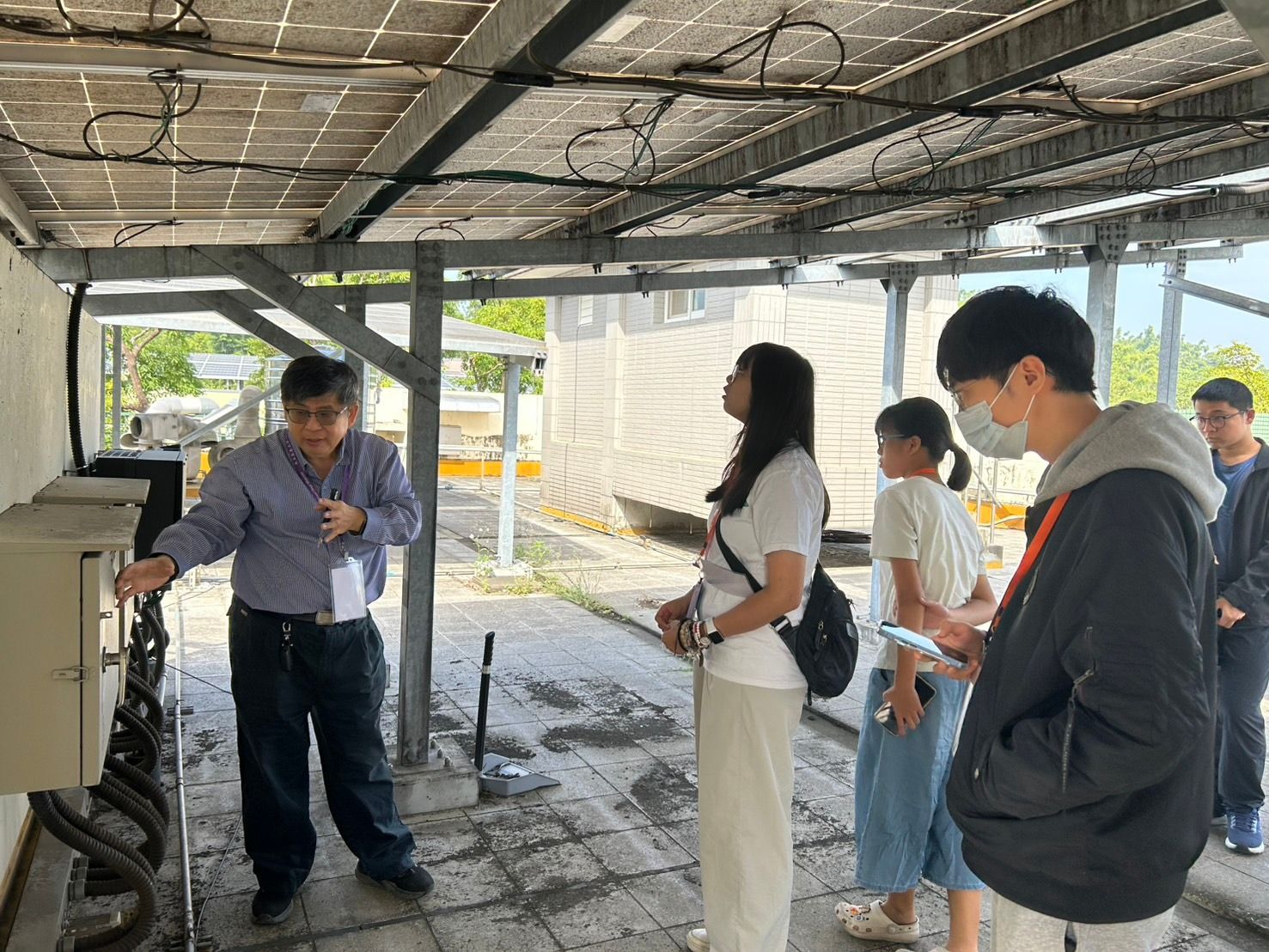 學生能直接理解光電在校園中的角色與永續價值。 (二)綠氫示範站介紹與能源轉型趨勢 本課程重點之一為嘉義大學「綠氫綠氧示範站」之實地觀摩。課程介紹內容包含: