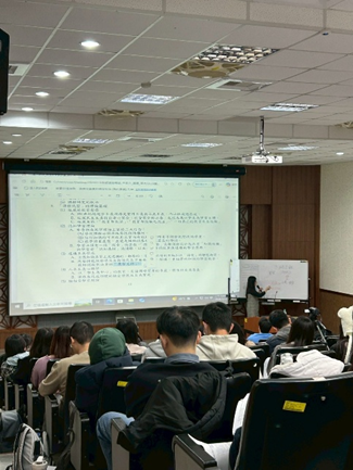 照片說明:講師與學生解析題目 | 照片說明:教師講授課程內容 | ||||||||||