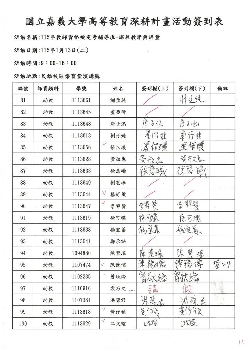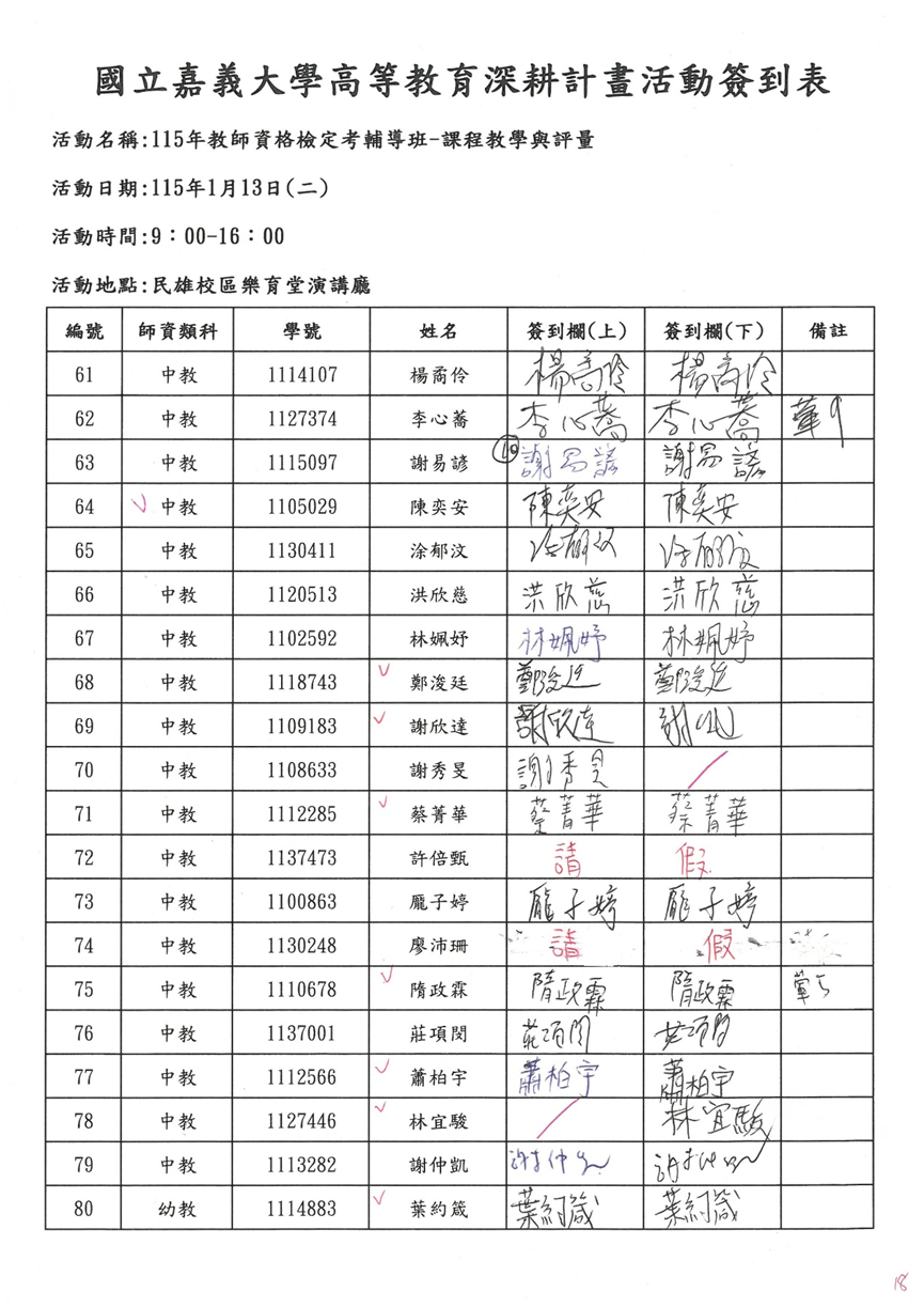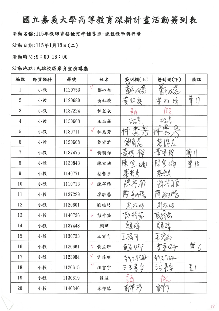 活動名稱 | 115年度教師資格考試輔導班-課程教學與評量 | ||||||||||