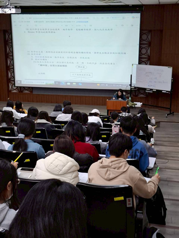 活動內容 | 課程教學與評量 1講師透過投影片配合書面講義授課 2提及課程設計模式中泰勒的目標模式:目標è選擇è組織è評鑑 3強調增強物中的增強作用必須為學生喜愛之事務 4手寫題應注意,作答區、字體、選擇題和手寫題之時間分配 5綜合題可多利用列點論述,提高得分 6注意十二年國教之內涵:教師應重於如何引發學生主動探索教師為陪伴者 | ||||||||||