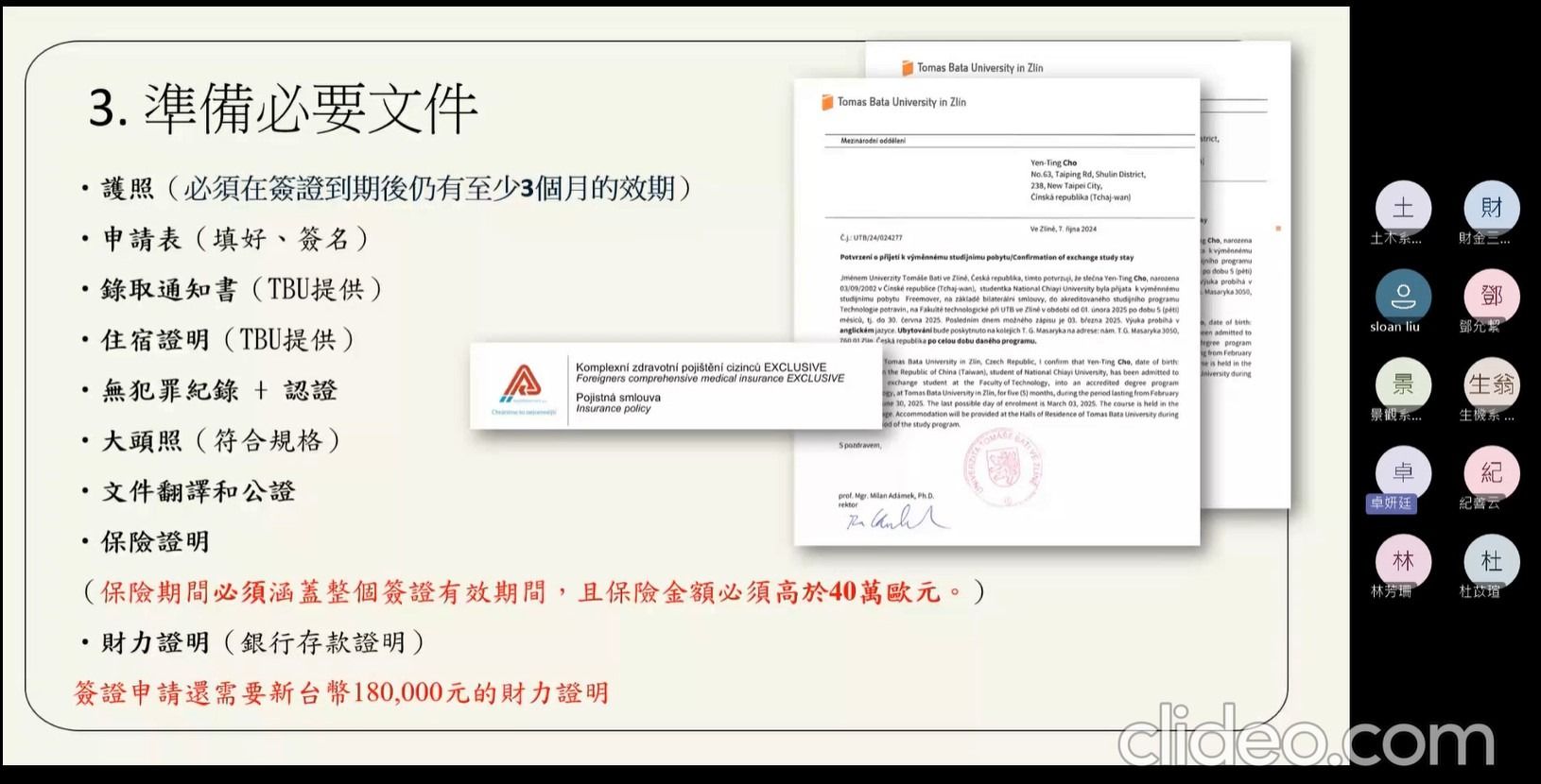 活動內容 | 本次出國研修講座為線上講座,由食品科學系的卓妍廷同學擔任主講,詳細分享了她在捷克托馬斯巴塔大學的交換生活,首先介紹捷克的整體國家概況,包含著名的觀光勝地如布拉格老城區、溫泉小鎮卡羅維瓦利以及充滿童話色彩的CK小鎮,並強調了捷克深厚的啤酒文化與世界遺產。卓同學提供了從布拉格機場或維也納機場前往Zlín的具體交通路線,並推薦了必備的交通購票 App,如ÖBB和Můj vlak。當地大學修讀食品科學相關課程內容包含「食品分析」、「植物產品」及「美食技術」,卓同學特別介紹了其最喜愛的課程Plant Foodstuffs II,這門課結合了理論與實作,讓學生親手製作焦糖、棉花糖等產品,也介紹了捷克的課程特色,如小班制的實驗課、老師鼓勵放手實作的教學風格,以及對於藝術系同學推薦的特色「製鞋課程」。卓同學不僅分享了當地的氣候__四季分明,冬季有機會看到積雪,ESN國際交流活動包含Welcome Party、Goodbye Party以及實用的生活科技工具,也提供了詳盡的開銷清單,從4萬2台幣的機票到每月4200捷克克朗的房租,總花費約為25萬台幣,為有意前往交換的同學提供了極具價值的財務參考。