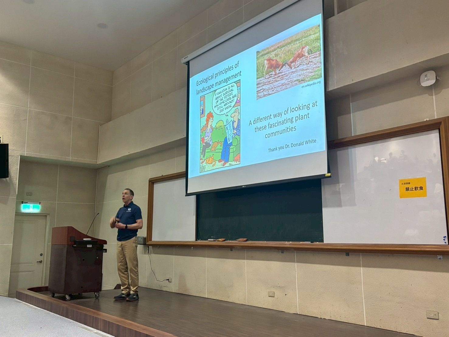 活動內容 | 本場講座特別邀請到美國猶他州立大學植物、土壤與氣候系系主任Paul G. Johnson 教授擔任主講人。講座主題以「Perfection? What does the drive for perfection silence in you?」(完美?對完美的追求讓你失去了什麼?)為核心,探討人類對於景觀美學與自我要求的心理機制。Johnson 教授首先透過「景觀」的視角切入,展示了人類如何試圖將大自然塑造成整齊劃一、完美的模樣,他引導學生們思考,這種對「完美」的執著是否反而壓抑了物種的多樣性與生命的自然本質?更延伸至人的內在,探討「神經多樣性(Neurodiversity)」的議題。他利用投影片分析了基因、環境、以及複雜的神經發育過程,如自閉症、創傷或中風等,如何形塑出不同的思考方式。活動結束後教授也與學生們進行了小規模的圓桌交流會,在輕鬆的氛圍下,學生與教授一邊享用點心,一邊針對學術研究、留學生活以及如何面對職涯壓力進行深度對話,這種結合「大班演講」與「小班座談」的形式,讓學生既能獲得宏觀的知識架構,也能獲得具體的人生建議,打破了傳統學術講座的隔閡感。