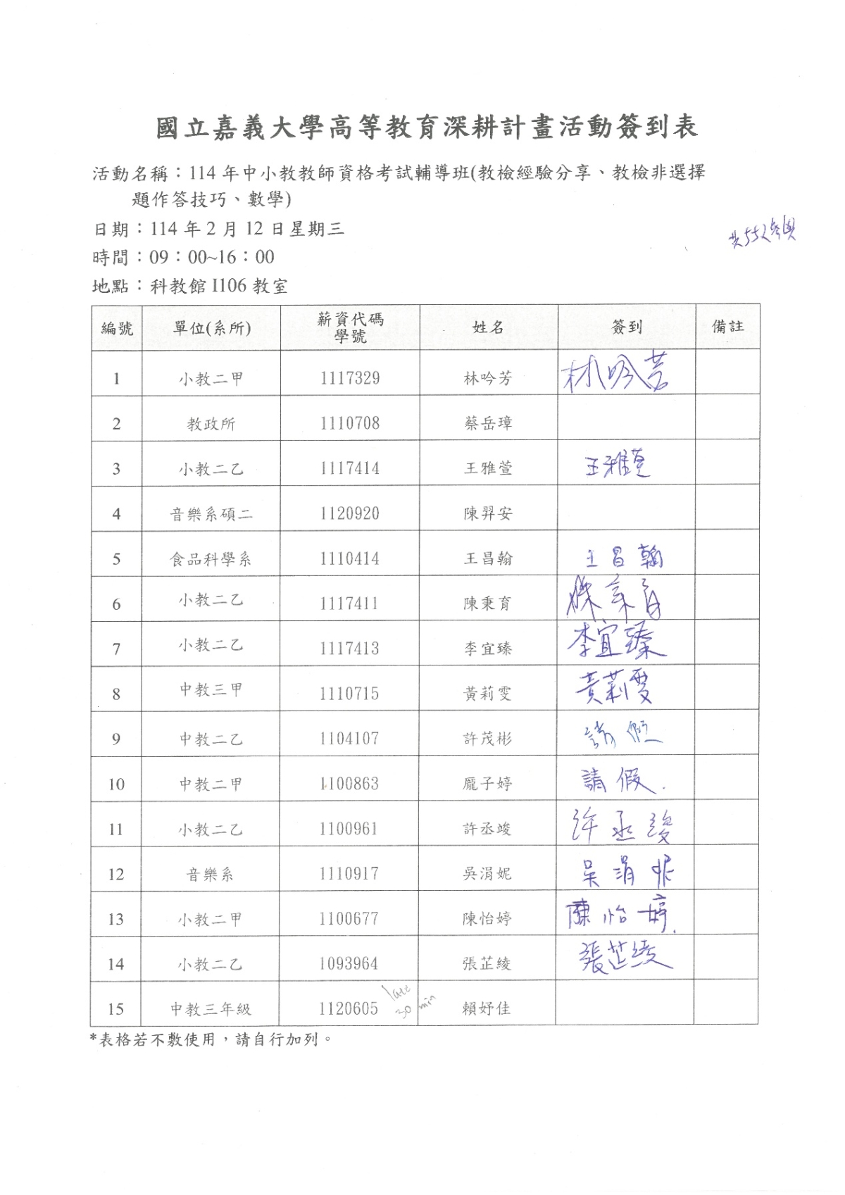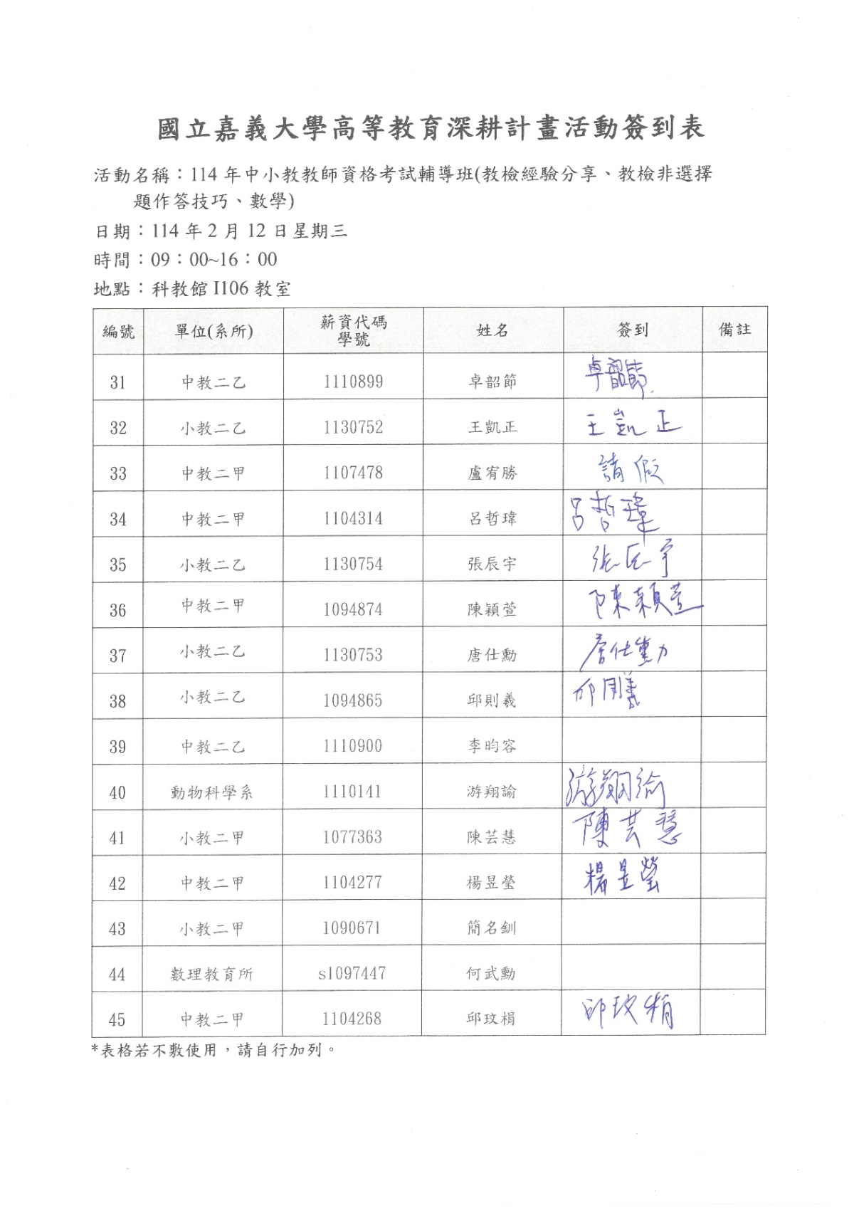 活動名稱 | 114年度教師資格考試輔導班(中小教)- 教檢非選擇題作答技巧 | ||||||||||