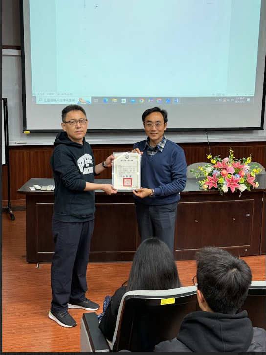 照片說明:講師講解授課內容 | 照片說明:主任頒發感謝狀予講師 | ||||||||||