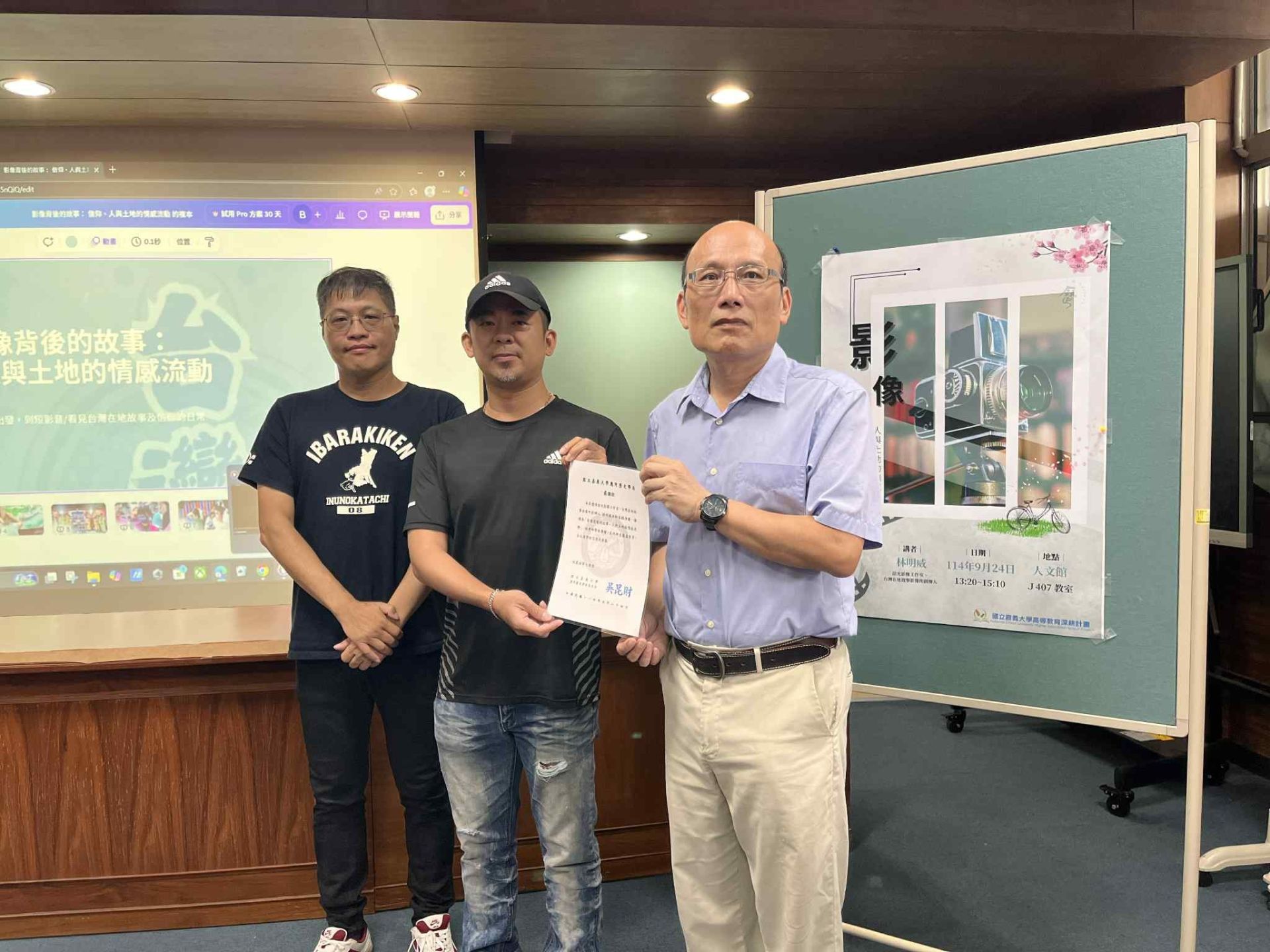 執行成果 | 本次活動邀請影像創作者林明成老師,以「影像背後的故事:人與土地的情感流動」為題進行演講,獲得熱烈迴響。林老師透過多年影像紀錄經驗,分享他在台灣各地拍攝人文與自然的故事,特別以白沙屯媽祖進香影像為例,呈現信仰如何串聯人群與土地,展現集體記憶與文化力量。講座中,觀眾隨著影像感受到人與土地間細膩的情感流動,理解影像不僅是紀錄,更是承載文化與情感的重要媒介。活動中,師生與社區參與者積極提問交流,對於如何透過影像保存在地故事有更深層的認識。整場活動在溫暖氛圍中圓滿結束,不僅啟發參與者思考自身與土地的關係,也讓大家更深刻體會影像在保存信仰與文化記憶上的獨特價值。 | ||||||||||||