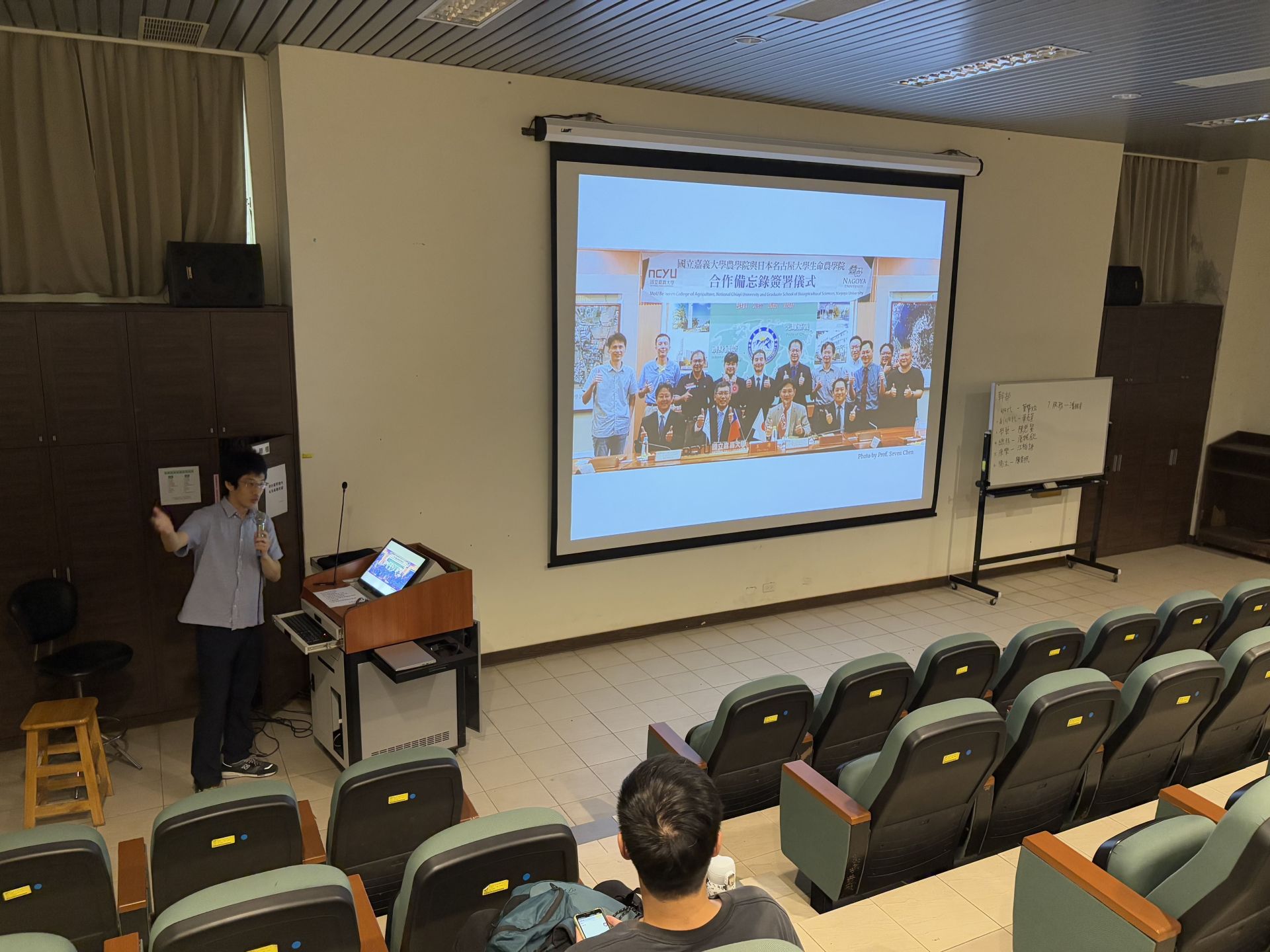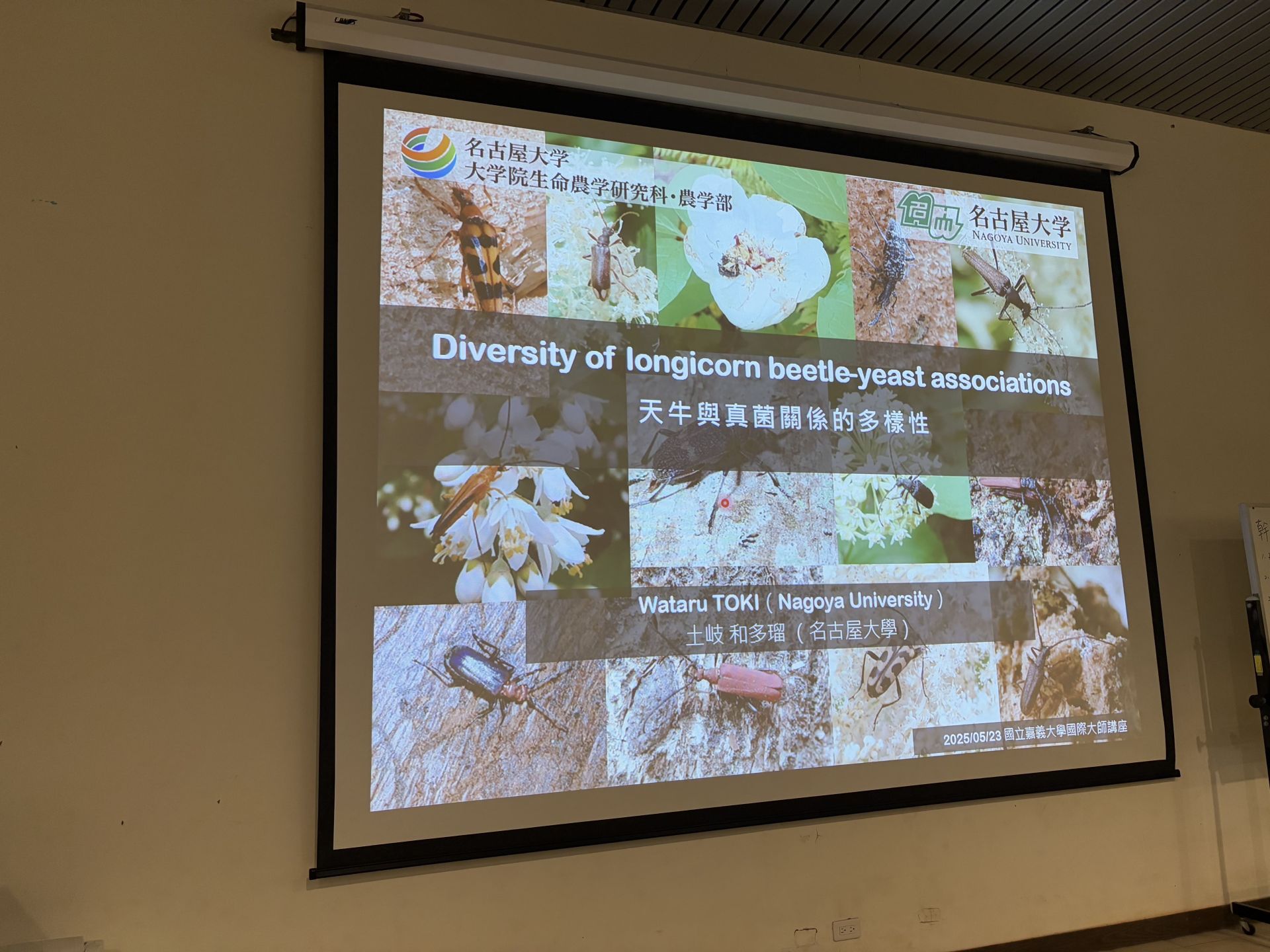 活動內容 | 為提升本校師生國際視野與研究能量,國立嘉義大學生物資源學系於 2025年5月23日(五)上午10時10分至12時,假該系一樓視聽教室舉辦「國際大師講座(Seminar Announcement)」活動,邀請 日本名古屋大學生物農業學院土岐和多瑠博士(Dr. Wataru Toki) 主講,題目為 「Diversity of Longicorn Beetle–Yeast Associations(天牛與真菌關係的多樣性)」。 講座內容聚焦於天牛與真菌(酵母)之間的共生與交互作用,探討其在生態系功能與生物多樣性中的角色。講者以豐富的研究案例與實驗結果,說明昆蟲與微生物之間的關係對於森林健康與生態平衡的重要性,並分享其於名古屋大學進行的最新研究成果與國際合作經驗。活動全程以英文進行,鼓勵學生主動提問與交流。 本次講座由本校「高教深耕計畫」與「國立大學系統國際工作坊」共同支援,旨在透過與國際學者的直接互動,促進跨國學術交流與生態科學知識之分享。 | ||||||||||||