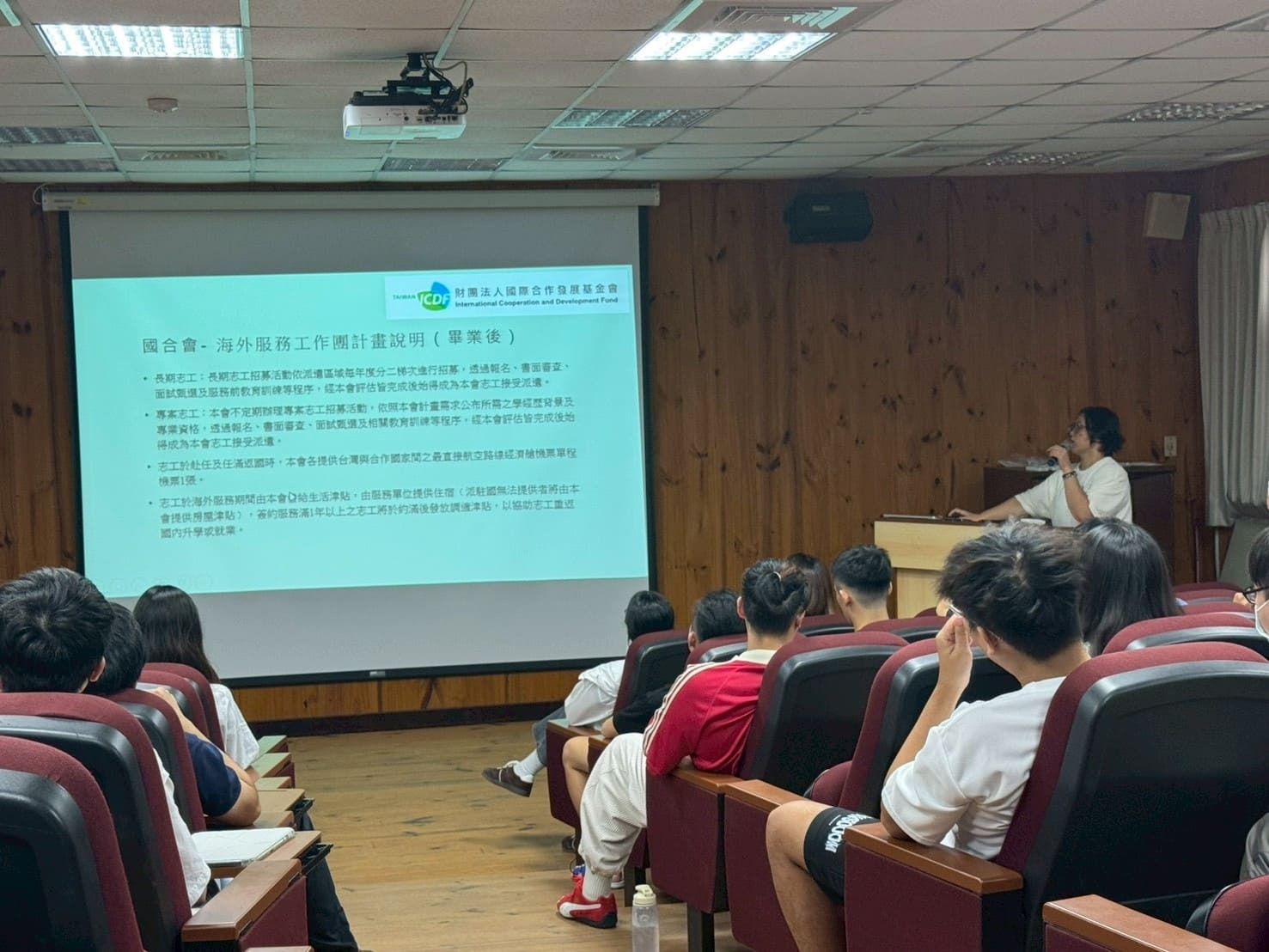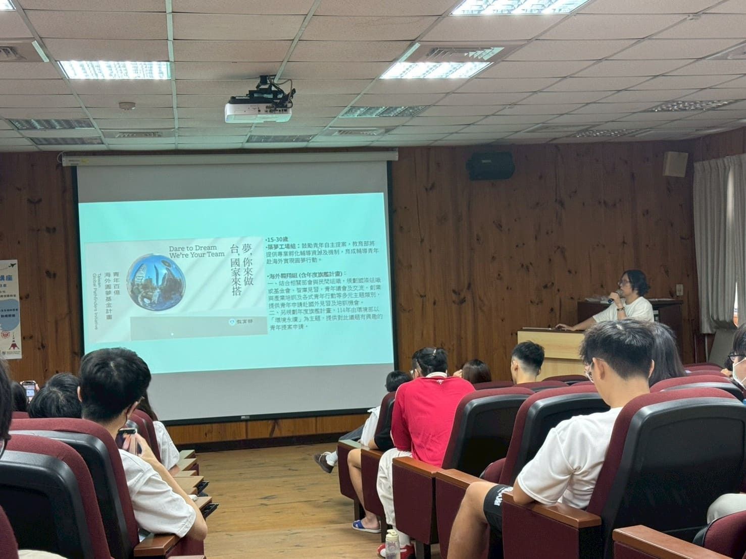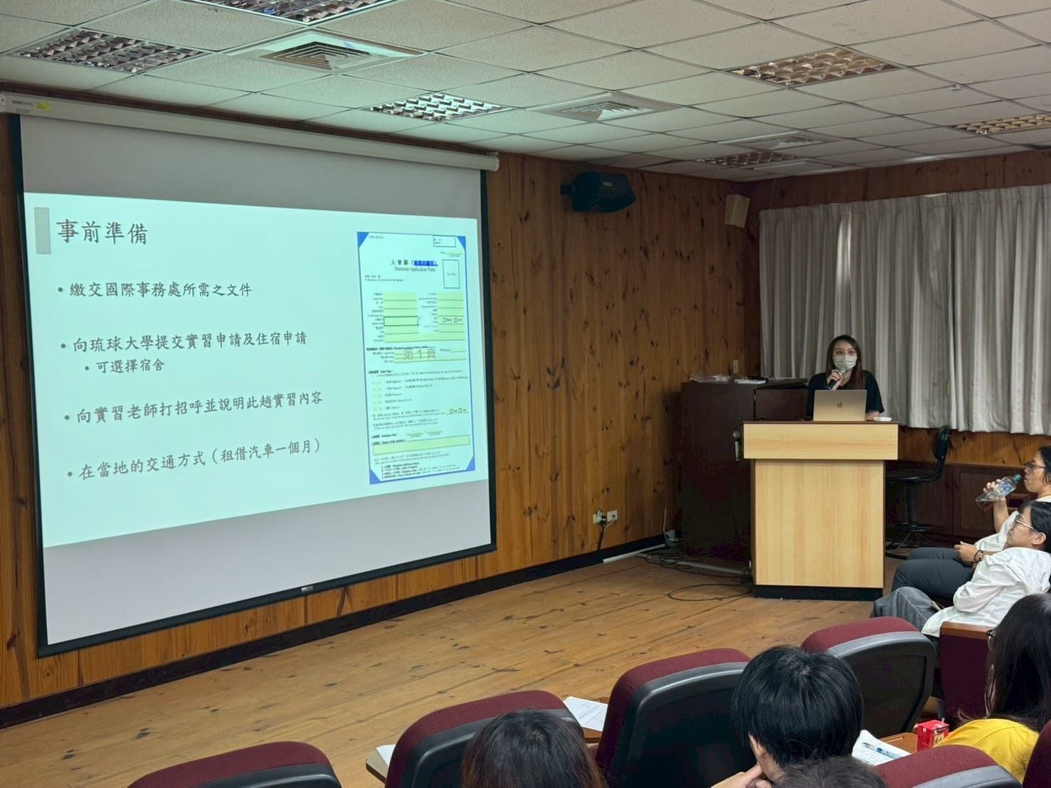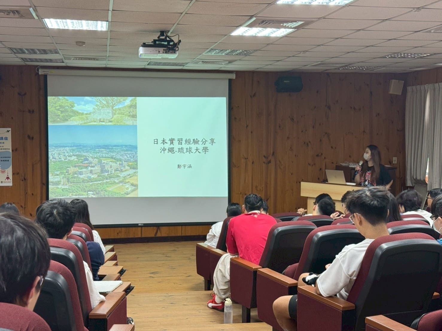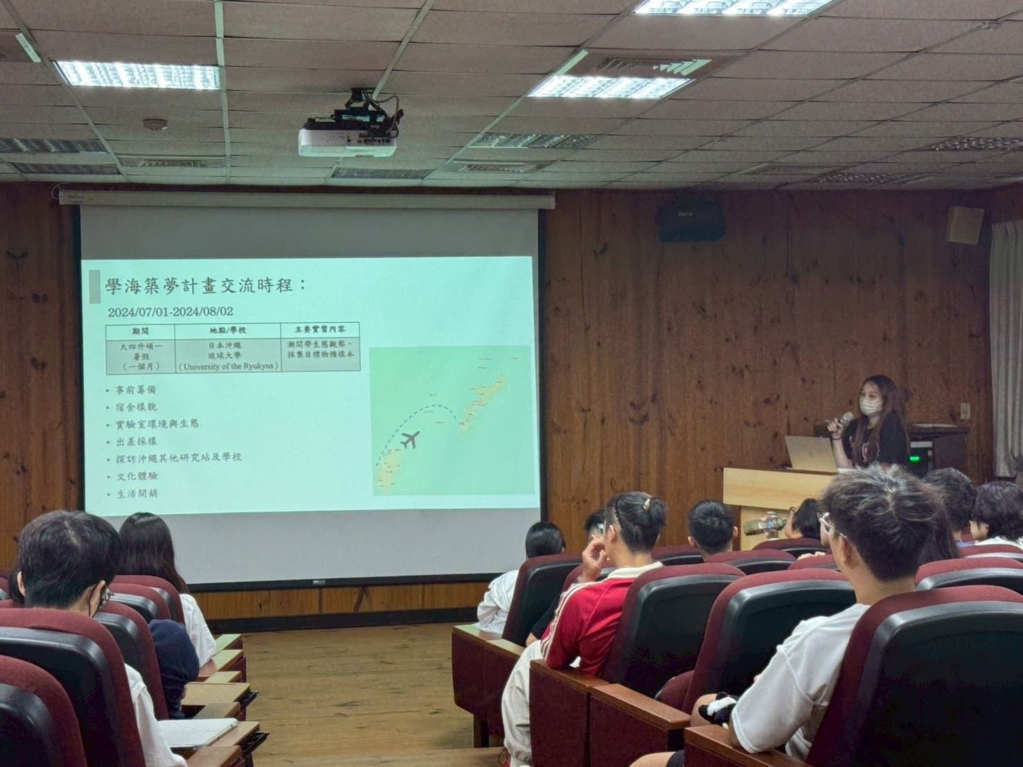 活動內容 | 本場「出國研修實習講座」於114年9月26日(星期五)下午13:20至15:10本校蘭潭校區水生生物科學系館4樓視聽教室舉行,邀請本校水生生物科學系楊松穎助理教授分享有關日本出國研修與實習前的準備。楊老師將出國前準備分為心態面、實體面、安全面三大面向,內容包含明確目標、挑戰與適應、語言能力、財務與心理準備、了解當地文化與交通等,並說明各單位與計畫提供的出國交換申請機會。除了協助同學釐清規劃出國研修的疑問,更邀請一同到琉球大學交換的鄭同學上台與學弟妹分享自身出國實習經驗。 | ||||||||||||