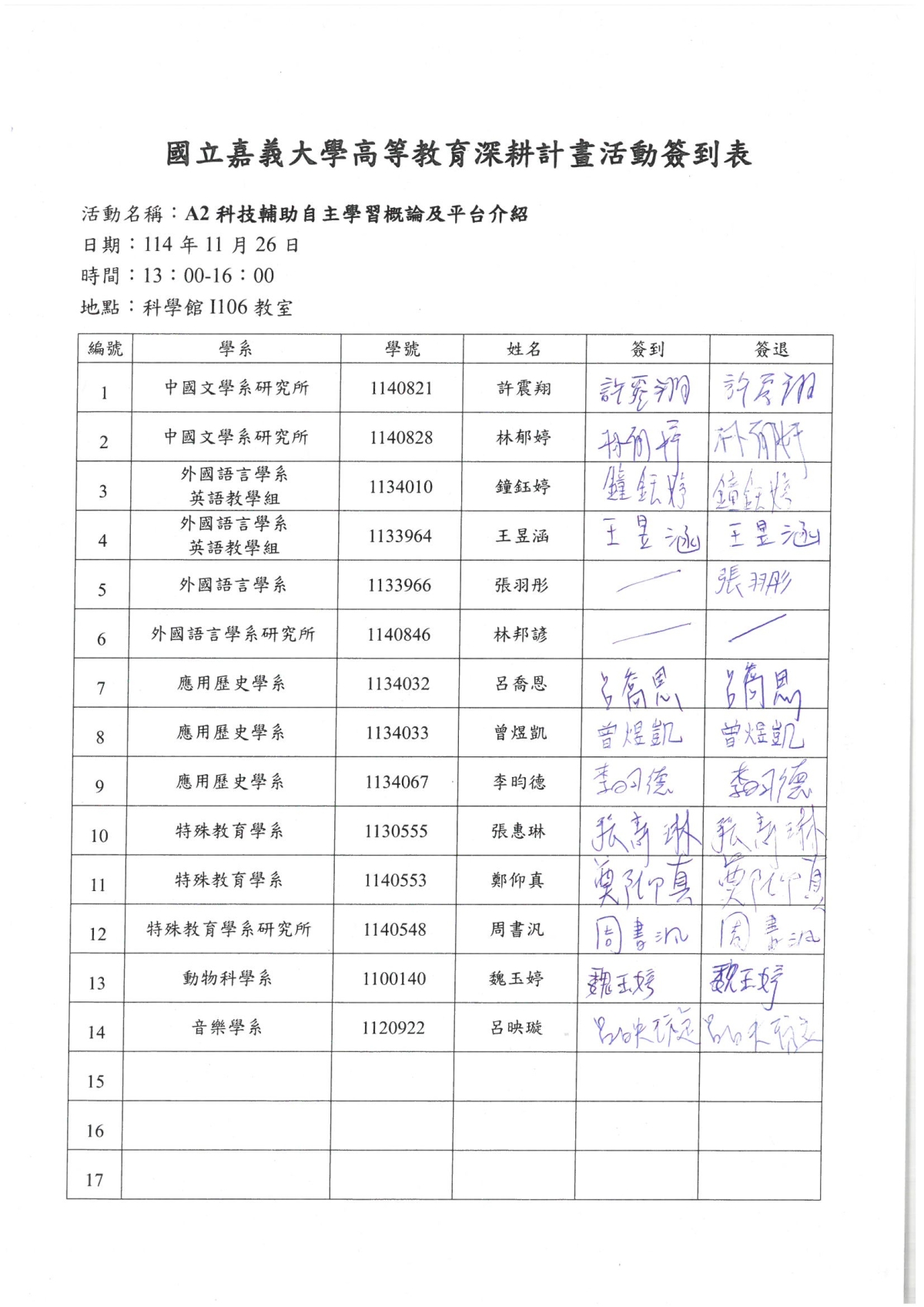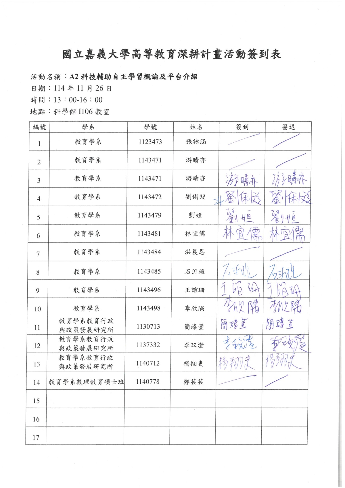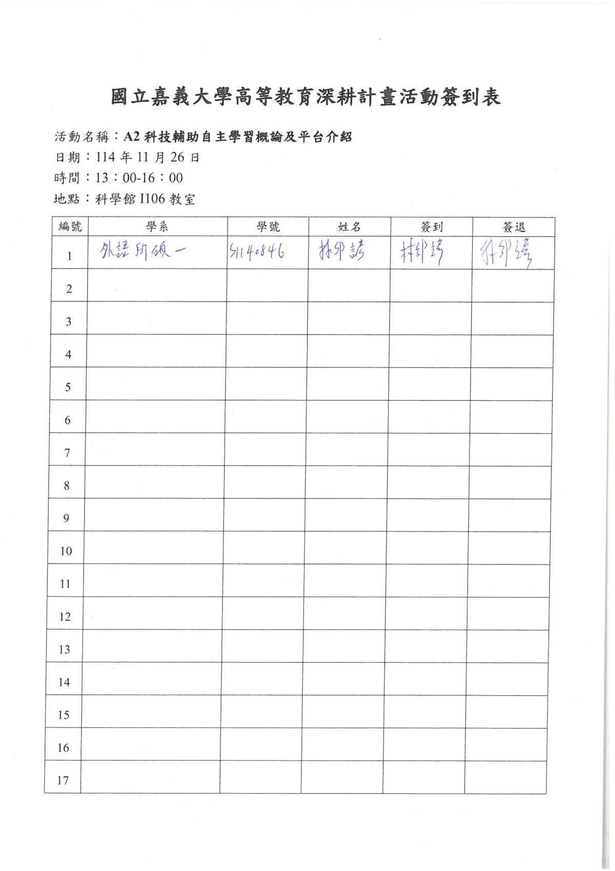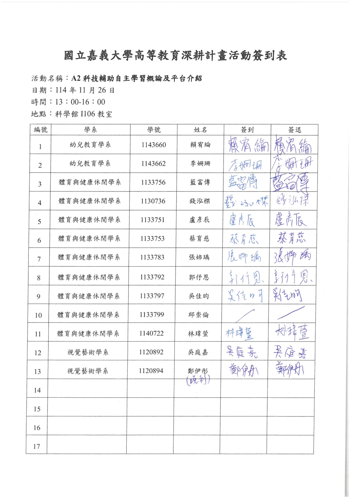 活動日期 | 114年11月26日 | 活動時間 | 13:00-16:00 | ||||||||