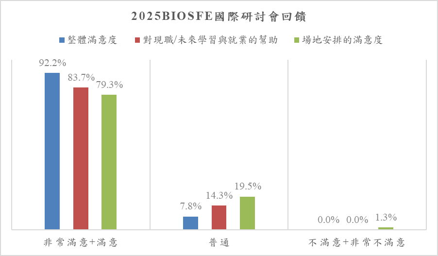 檢討與建議 | 參與者建議,未來如再辦理相關研討會,期盼講師能適度預留更多Q&A時間,以促進與會者與講師之間更深入的互動與交流。在全程英文進行的情況下,部分學生反映於參與過程中,對講師說明內容之即時理解仍有一定困難。 另多數參與者肯定本次研討會主題具高度國際視野,內容兼具學術深度與實務應用價值,貼近永續營養與替代性蛋白發展之實際需求,並期盼未來能持續辦理相關主題之國際交流活動,以促進學術研究、產業實務與永續發展目標之連結。 | ||||||||||||
