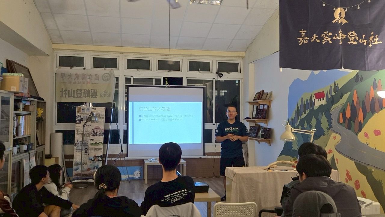 活動內容 | 演講內容為在高海拔環境下,若發生緊急症狀或受傷時的正確應對與處置方法。 內容涵蓋:高山症、創傷(如骨折、扭傷)及螫傷等狀況發生時的緊急處理方式,講師在簡報中明列出醫藥箱所需物品,並逐一講解運用在哪種情況及如何使用。 也因為講者的身分為消防員,更加著重在教導緊急情況下,應向哪個單位求救、求救時需說明的事項,以及在等待救援期間如何照顧傷患並定時紀錄其生命狀態;講者也有帶部分實體緊急醫療用品,與我們分享使用方式和注意事項,也叮嚀我們須在狀況發生時保持冷靜,緊急處理後等待救援。 | ||||||||||||