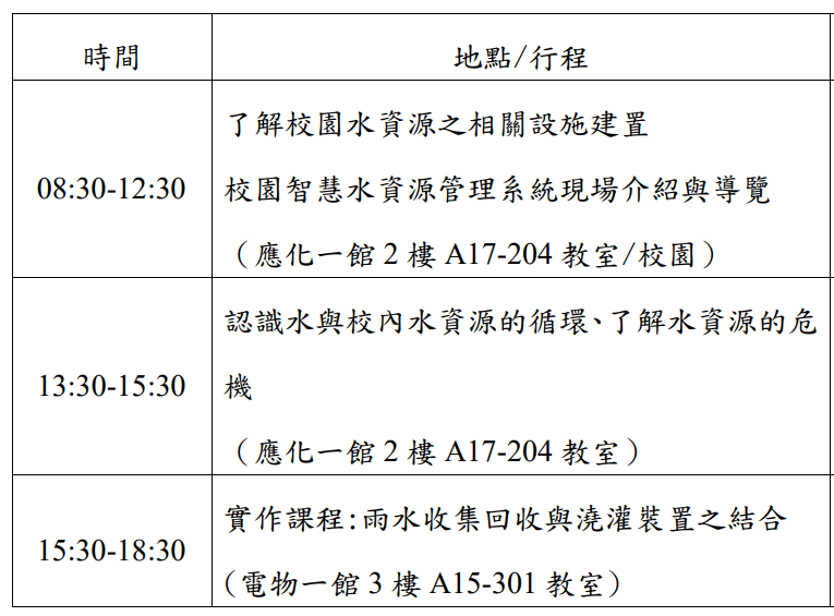 課程名稱 | 校園智慧水資源建置與應用 | ||||||||