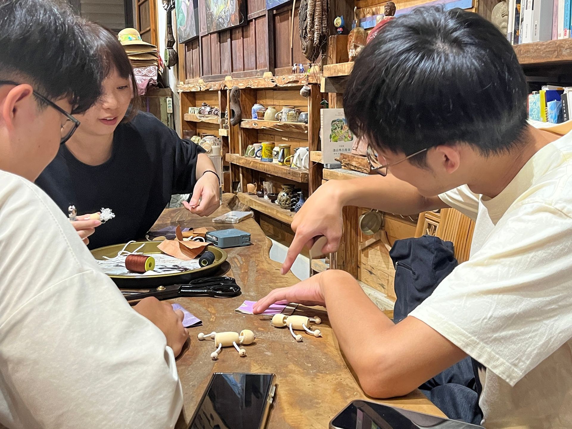 檢討與建議 | 一日行程的安排於番路鄉到紅瓦貓,加入兩場DIY體驗,由於學生人數較多,時間控管上較困難,而漆扇DIY從分線、勾圖到灑粉、晾乾都需要不少時間;小偶服從偶的外型製作、穿線到偶服設計、拼貼,每位學生各有天馬行空的想法,產出的成果相當多元豐富,但時間卻相當緊湊。由於兩項體驗皆為首次設計,可考量更為具焦之作法如:多人共同完成一份、事先備好半成品、素材等,既提供學生自由發揮的空間,亦能保有餘裕讓學生都能細細品味、體驗到每個環節。 | ||||||||