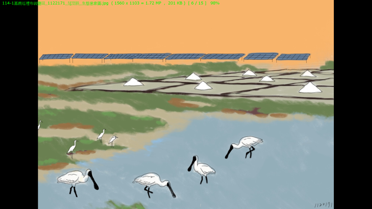 本課程由教師全程帶領,結合現地生態導覽、觀察與實作體驗,安排學生進行濕地賞鳥、綠能場域參訪及鹽田實地操作,將課本中的生態與文化知識轉化為真實可感的學習經驗。學生普遍反映,實地觀察讓學習更具深度與溫度,如有學生表示「課本、圖鑑上的鳥類從 2D 變成 3D,對牠們更加熟悉」,也有人分享「第一次走進真正的鹽田,很有意思」,甚至在看到黑面琵鷺時直言「以前只在課本看過,能看到本體在活動很開心」。整體而言,學生透過親身參與,不僅提升學習動機,也加深對生態保育與地方文化的認同感。