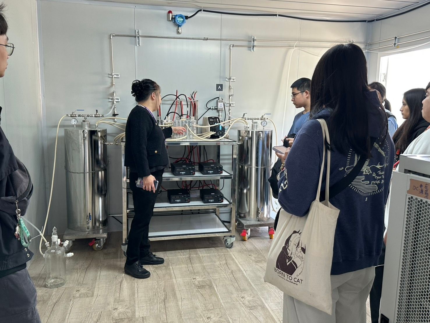 學生能直接理解光電在校園中的角色與永續價值。 (二)綠氫示範站介紹與能源轉型趨勢 本課程重點之一為嘉義大學「綠氫綠氧示範站」之實地觀摩。課程介紹內容包含: