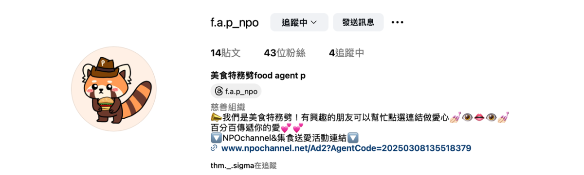 課程執行成果 | 一、量化成果 *六個IG專頁、二組FB粉絲專頁、一個YT頻道、一個thread串文 *9周公益勸募內容實作 *創作86篇社群貼文 *產出6份亮點報告書、與34份個人心得 *獲得二個獎項:公益實踐獎第三名「予人·拾/食光」、創意突破獎佳作「T.H.M.觀測點Σ」。