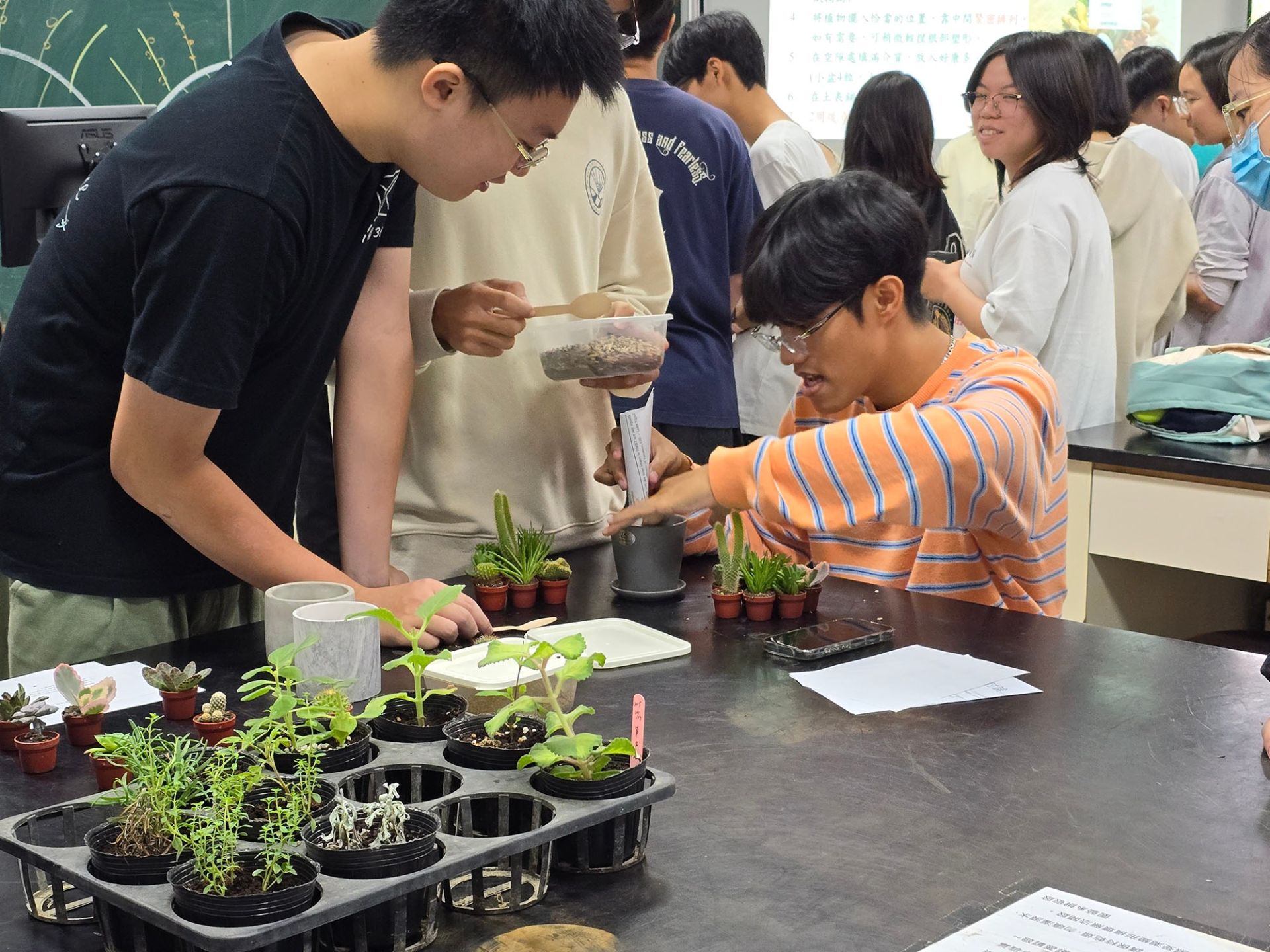 具體措施與 亮點成果 | 1. 為了讓學生能夠更加了解園藝科學與其在生活之應用,課堂中先從教導理論開始,並每堂課配合相關的實作練習,讓學生了解不同的植物有性與無性繁殖技術,在老師及助教的指導下親自從播種開始進行草花育苗或選取插穗進行扦插等園藝技藝操作,使修課學生更直觀了解園藝作物生長狀況,並熟稔操作技巧,除生產流程外,為使學生了解完整園藝產業鏈,也將園產品處理與加工列入課程範圍,其中讓學生從秤取油品與氫氧化鈉開始,進行皂化反應,到最後修整和包裝的香草手工皂製作也受到許多學生熱烈的回響。 2. 學生意見回饋調查中,得到相當高的滿意度,約78%同學對於課程內容與教學方法等感到非常滿意,其他20%的學生表示滿意。修課學生意見回覆中,也顯示出課程內容設計有達到預期目標,能顯著提升學生在園藝領域之知識與興趣。 | ||||||||