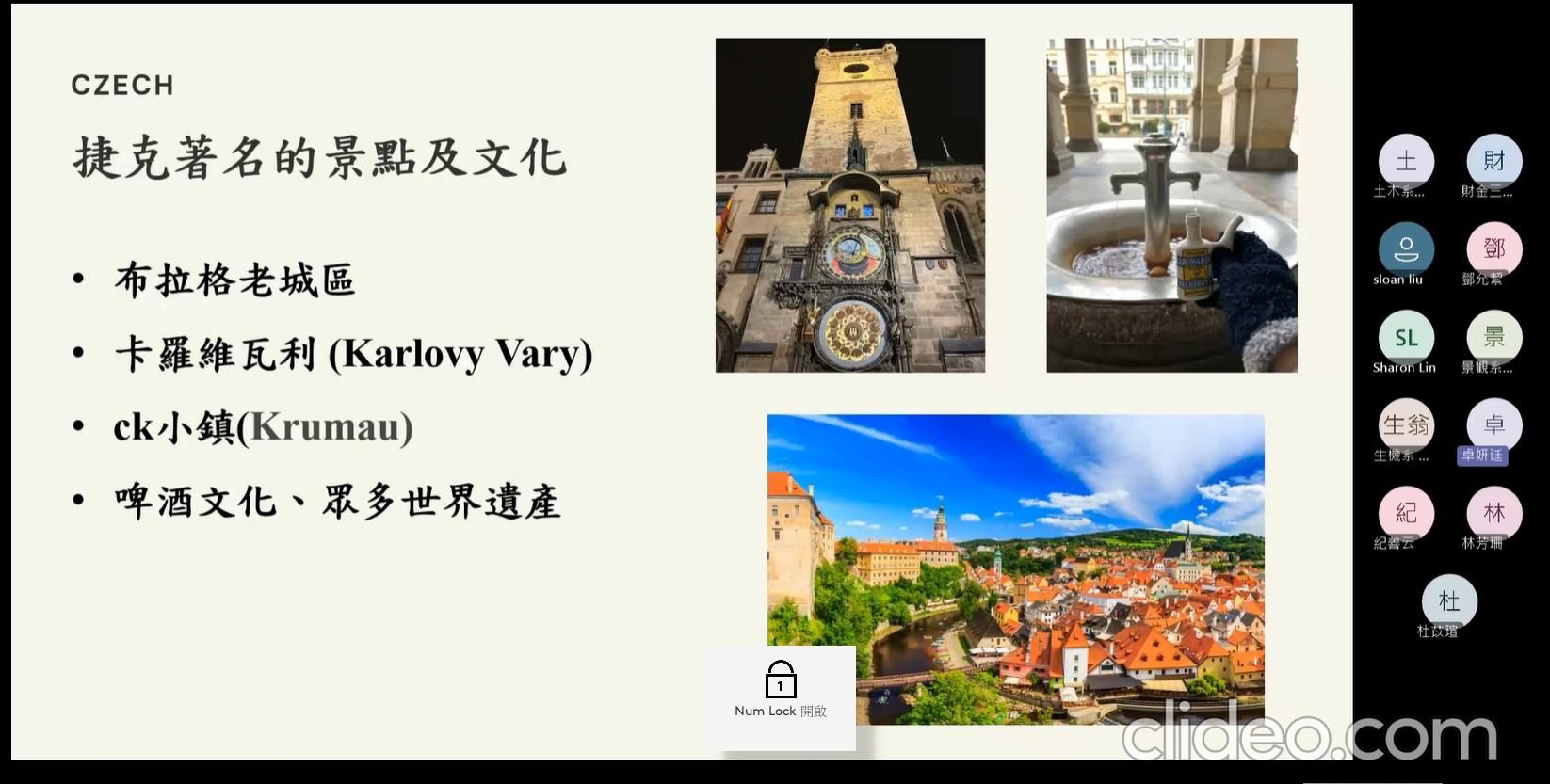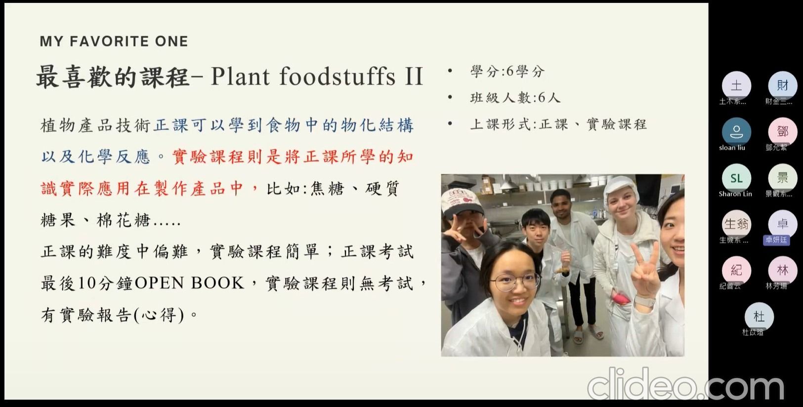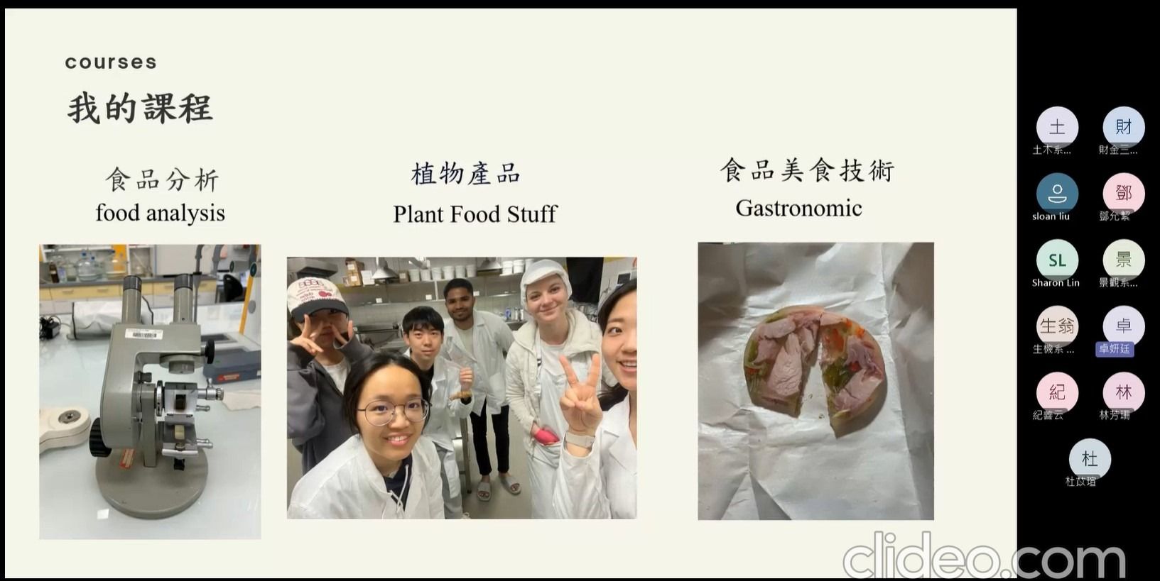 活動內容 | 本次出國研修講座為線上講座,由食品科學系的卓妍廷同學擔任主講,詳細分享了她在捷克托馬斯巴塔大學的交換生活,首先介紹捷克的整體國家概況,包含著名的觀光勝地如布拉格老城區、溫泉小鎮卡羅維瓦利以及充滿童話色彩的CK小鎮,並強調了捷克深厚的啤酒文化與世界遺產。卓同學提供了從布拉格機場或維也納機場前往Zlín的具體交通路線,並推薦了必備的交通購票 App,如ÖBB和Můj vlak。當地大學修讀食品科學相關課程內容包含「食品分析」、「植物產品」及「美食技術」,卓同學特別介紹了其最喜愛的課程Plant Foodstuffs II,這門課結合了理論與實作,讓學生親手製作焦糖、棉花糖等產品,也介紹了捷克的課程特色,如小班制的實驗課、老師鼓勵放手實作的教學風格,以及對於藝術系同學推薦的特色「製鞋課程」。卓同學不僅分享了當地的氣候__四季分明,冬季有機會看到積雪,ESN國際交流活動包含Welcome Party、Goodbye Party以及實用的生活科技工具,也提供了詳盡的開銷清單,從4萬2台幣的機票到每月4200捷克克朗的房租,總花費約為25萬台幣,為有意前往交換的同學提供了極具價值的財務參考。