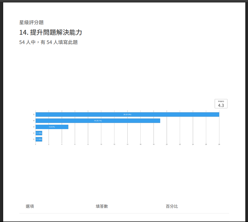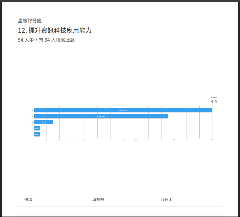 在其他回饋中,學生對於使用生成式AI工具在學習中有正向幫助,不論在查詢資料或是學習專利知識,生成式AI可以適當提供學生學習幫助,及時釐清重點以及問題。綜上所述生成式AI導入教學對於學生在各方面能力的提升均有幫助。 | ||||||||||||||||||||