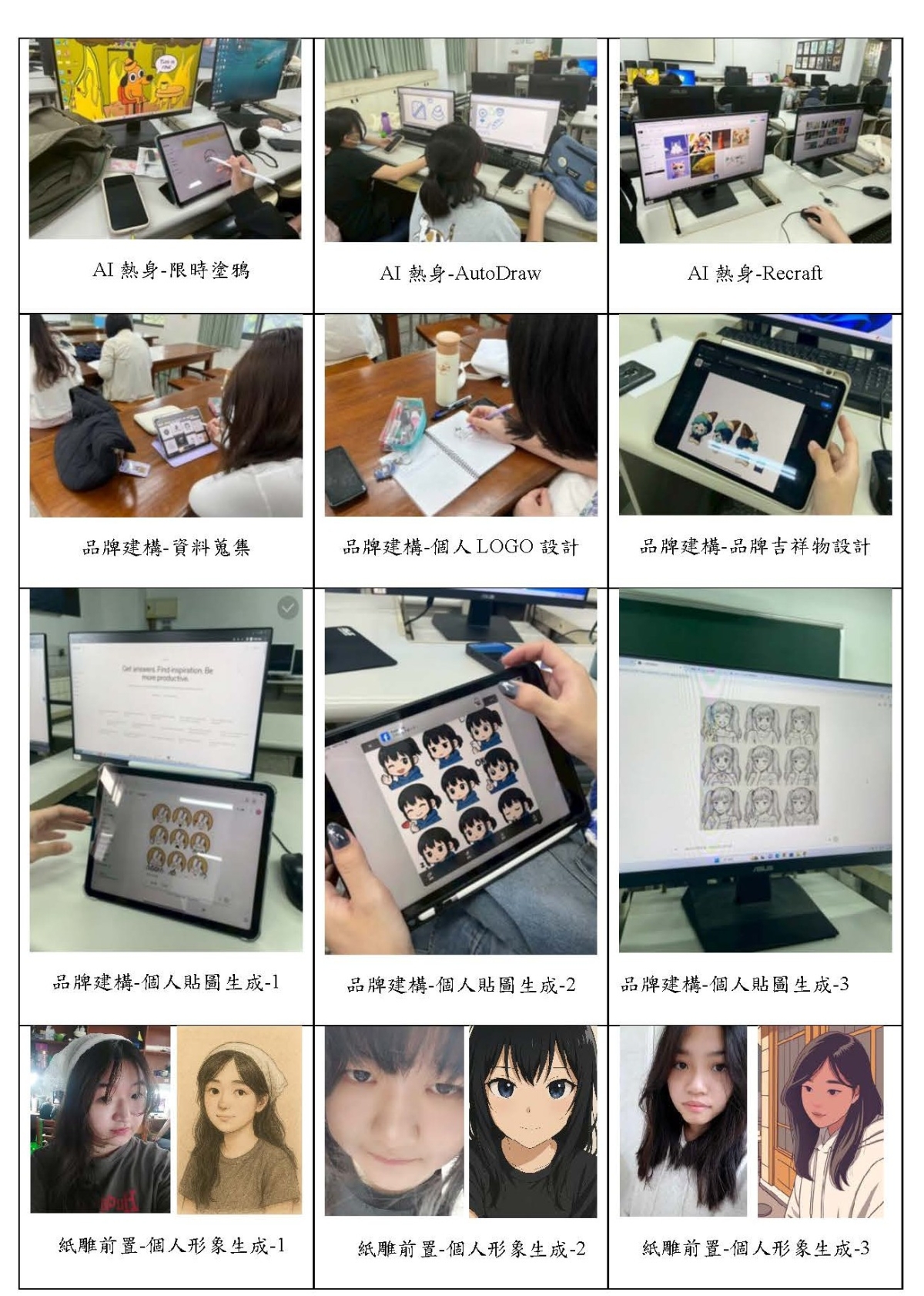 (1)將來可分段進行AI訓練模組,例如「文字敘事產生週」、「視覺風格建構週」,提升學生對AI應用的結構性認識。 (2)教學中應加入更多AI倫理與版權觀念教育,培養學生負責任使用技術的態度。 | ||||||||||||||||