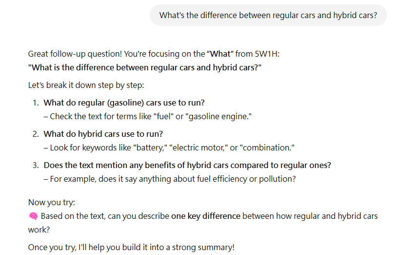 代表性學生語錄: 「讓我可以更了解文章的單字和意思」 「是,有時AI可以提供我答案的深度解析,我也比較知道答案從文章的哪段出來的,能更好的理解文章」 「可以,我有時候比較沒有耐心讀完時,可以直接請AI幫我抓重點」
